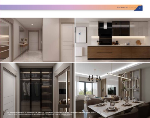 Mahal tefrişleri örnek olarak gösterilmiş olup, blok ve kata göre farklılıklar gösterebilir. Bu broşürdeki görseller ve bilgiler tanıtım amaçlıdır. Proje konut büyüklükleri ve mahal listelerinde uygulama projesi esastır.
